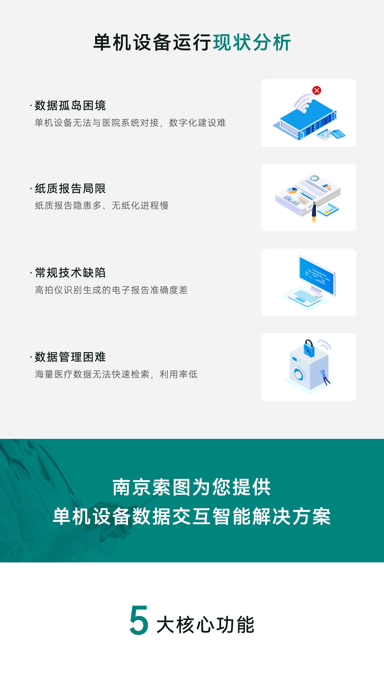 南京索图科技有限公司始终秉承专注于医疗影像信息化技术的核心研发与技术服务这一长期愿景,向公司的员工和用户传递用心探索图像的每一处细节,用爱专注客户的每一次服务和用生命构建医学影像大数据平台的核心价值观,力求演绎完美影像、统合精彩流程、构建数据平台。同时表达了索图人为医疗影像信息化建设一种不断探索和创新的企业精神。不断激励索图人探索图像更高境界,为用户提供优质的产品和卓越的服务。